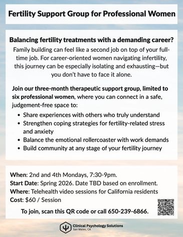 For career-oriented women navigating infertility to connect, manage fertility-related stress and anxiety, and build community.